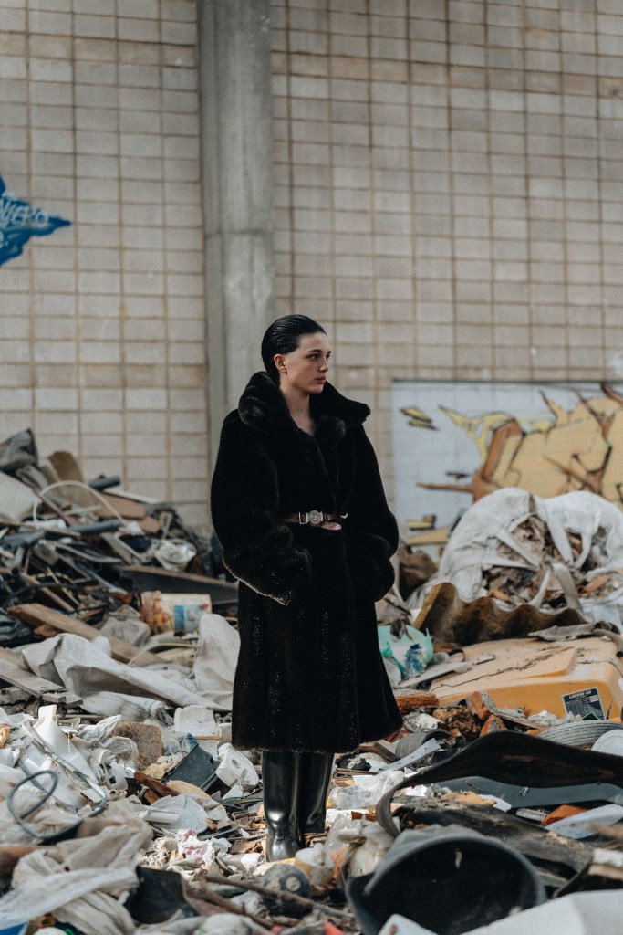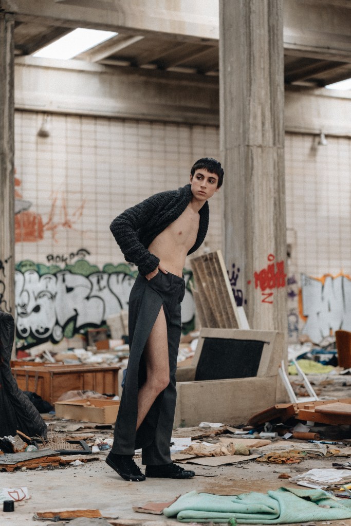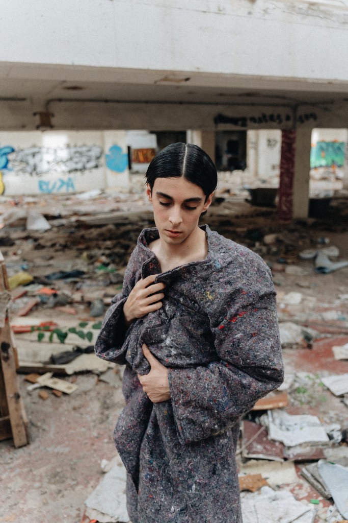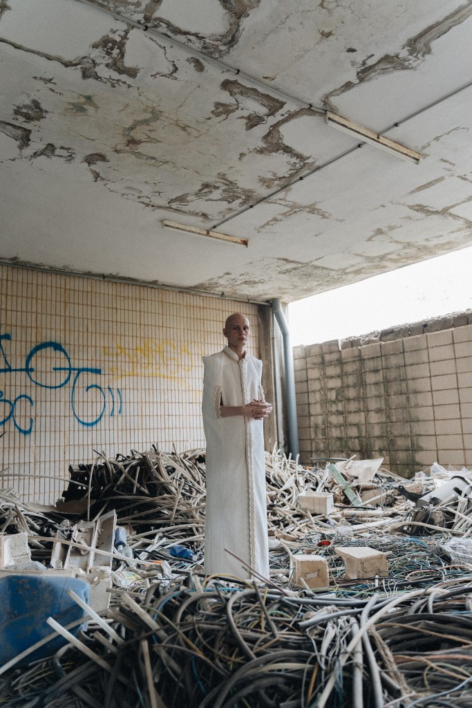 This proposal explores the tension between the fragile and the imposing, creating a visual narrative that fuses the childlike with the monumental. Through forms that evoke vulnerability, wide and tight fabrics are interwoven, creating contrasts between the delicate and the rough.