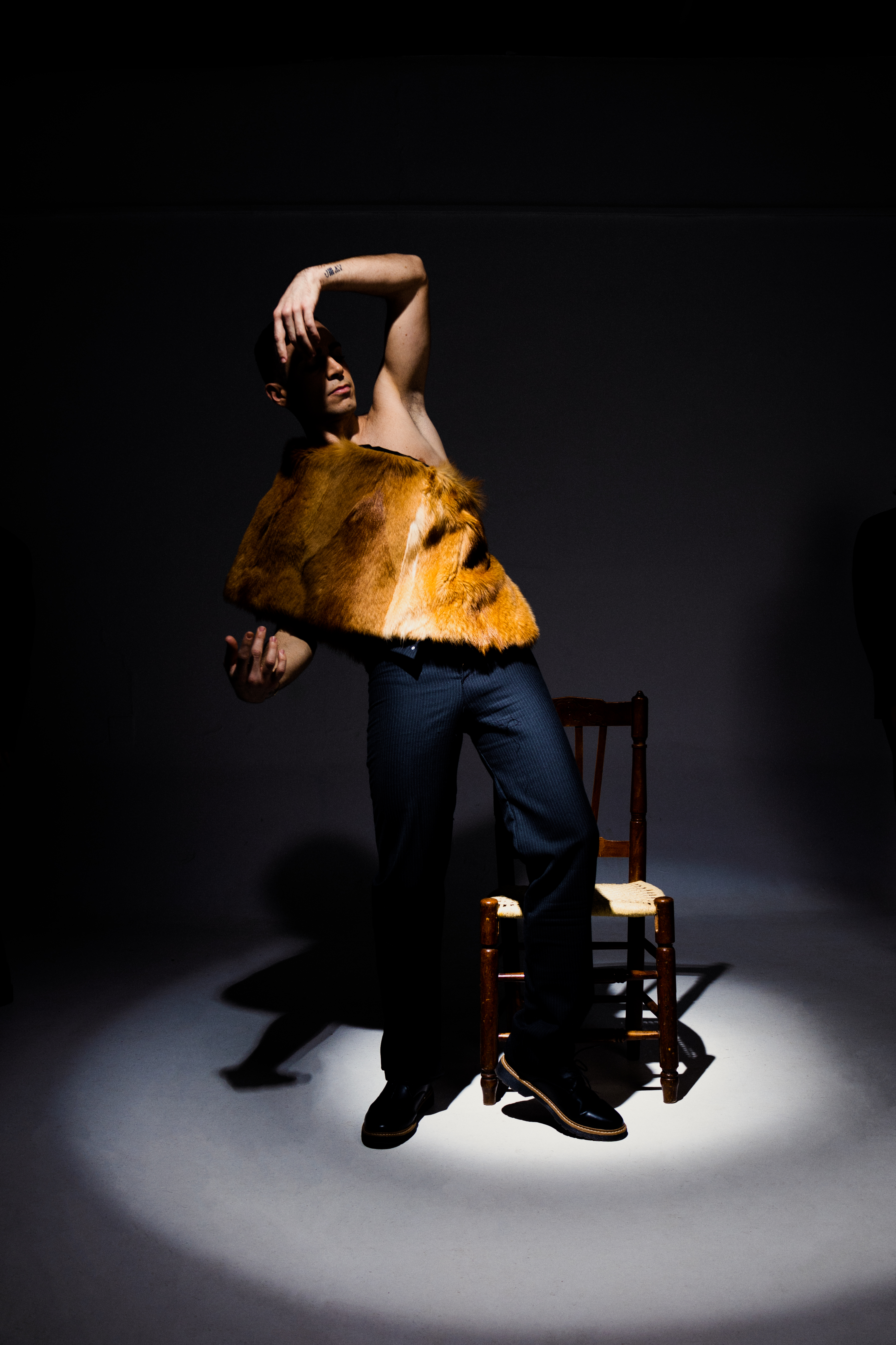 Based on the work of Pina Bausch, Nº7 (or how to be a courting animal) reflects the prevailing conservative transformation of the male role towards a concept of ambiguity. This man is going to be driven by his most primal instincts; he is going to court; to eliminate and to protitute all social modesty and take on a role of new virility: a new superman.